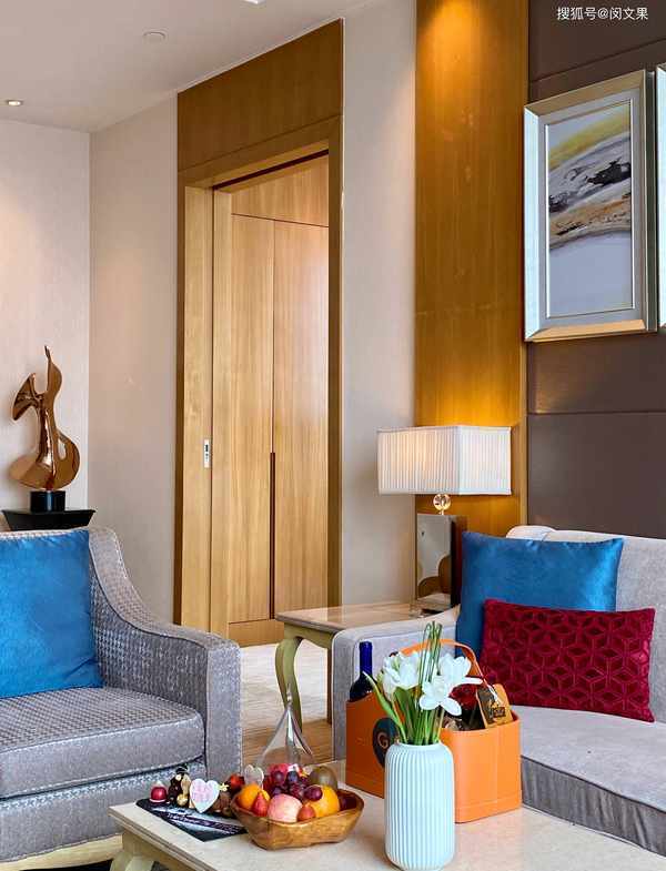 酒店整体设计风格以现代简约为主,融入部分岭南元素和周边文化特色。大堂装潢有简约东方美,水晶吊灯明亮空间,check in台背景墙的木雕壁画大气磅礴,空间氛围柔和又不失大气。