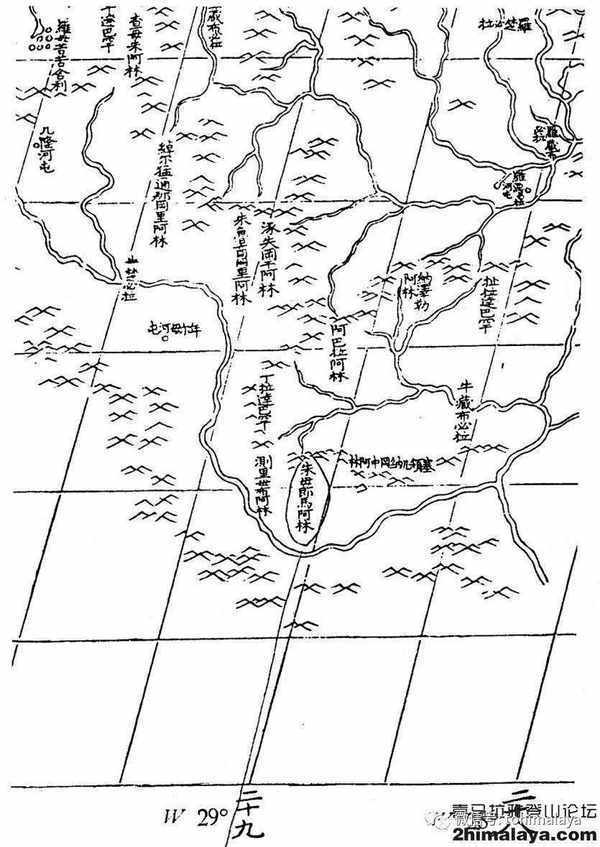 1708年至1716年,北京耶稣会的牧师绘制的珠穆朗玛峰区域地图