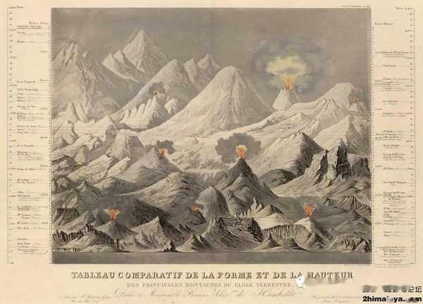珠穆朗玛峰被认定为地球海拔最高峰之前,在这张1850年的地图中,人们认为喜马拉雅山脉邻近的一座山峰,道拉吉里峰是世界第一高峰