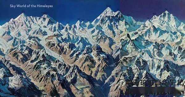 1966年“喜马拉雅山脉天空世界” - 艺术家,Heinrich Berann用时600小时绘制了这张令人惊叹的喜马拉雅山脉制图全景。这也被视作是他25年全景-绘图事业中“顶尖成就”