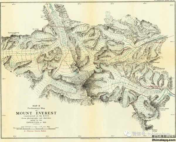 E.O. Wheeler少校,1921年珠穆朗玛峰探险活动测绘小队的成员,进行了珠穆朗玛峰周围区域的通常测绘(4英里/英尺),详细测绘(1英里/1英尺),并修改了已经存在的(前)锡金王国1/4英寸比例尺地图