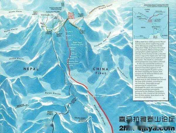 珠穆朗玛峰(当时中国)西藏地区/北坡的地图绘制