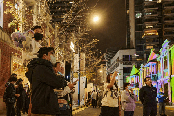 近年来,作为公共艺术的新媒体艺术受到了市民们的热烈追捧,其所在区域、商圈也成为热门打卡地。例如,落地上海奉贤的九棵树“焕光森林·东方曦望”,将城市公园打造成寻光探秘的奇幻之地,成为了“夜游奉贤”的王牌项目。重新开放的张园以“六幕拾光·张园百年”光影秀揭幕,百年历程流动在石库门建筑的外立面上,吸引了众多市民驻足观看。