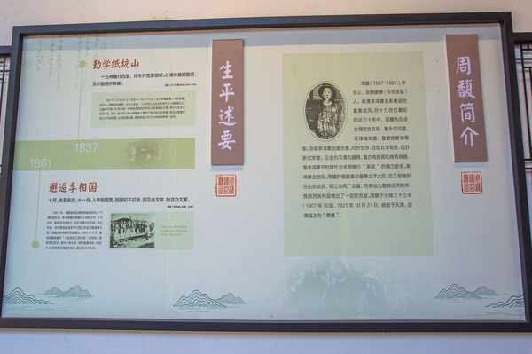 墙壁上有关于周馥一生的详细介绍。他曾任两广总督、两江总督、主政山东,是洋务派领袖人物李鸿章的追随者。虽然最终洋务运动以失败告终,却如同一颗种子,为中国的变革埋下了希望。