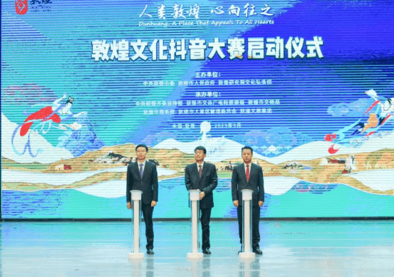 3月18日,由中共敦煌市委、敦煌市人民政府、敦煌研究院文化弘扬部共同主办,中共敦煌市委宣传部、敦煌市文体广电和旅游局、敦煌市文物局、敦煌市商务局、敦煌市大景区管理委员会、敦煌文旅集团承办的敦煌文化抖音大赛正式启动。
