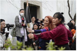 留园管理处的茹军老师提到,组织这样的活动正是想把赏园的快乐分享给世界,让更多外国朋友能深入了解苏州园林文化,推动中华优秀传统文化走向世界。同时,他也希望更多年轻人能来到园林,静下心来,慢慢走,反复看,体会其中韵味。活动的最后,沐禅老师向大家表演了礼射艺术,在他的指导下,每位朋友都体验了射箭的乐趣。大家在活动中领悟到许多——箭随心动,要专注瞄准目标,也要学会放手。