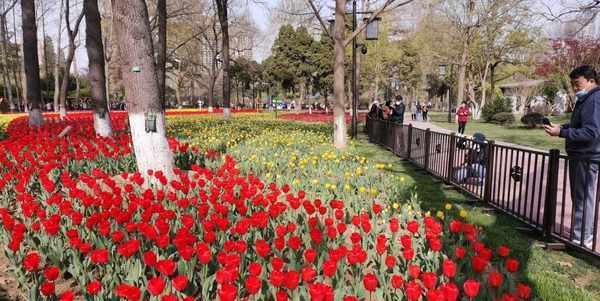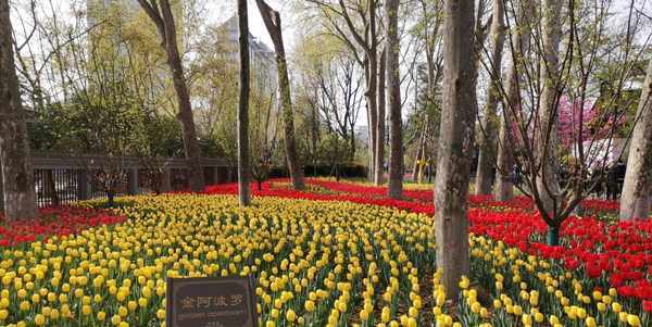 郁金香品种很多,而且种植面积超6000平方米,花期将持续15天左右;