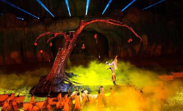 不过你也要计算好时间,因为接下来将上演《暴雨山洪》和《梦幻太极》两场气势恢宏,精彩纷呈的实景演出。19:00凤凰山广场首先上演的是《暴雨山洪》,这是集光、电、声、影视特技、舞蹈艺术于一体的大型实景“灾难性”演艺。场面气势磅礴、险象环生,让人惊叹不已。所以是绝对不能错过的演出,观赏指数五颗星。值得一提的是,该演出为免费观看。