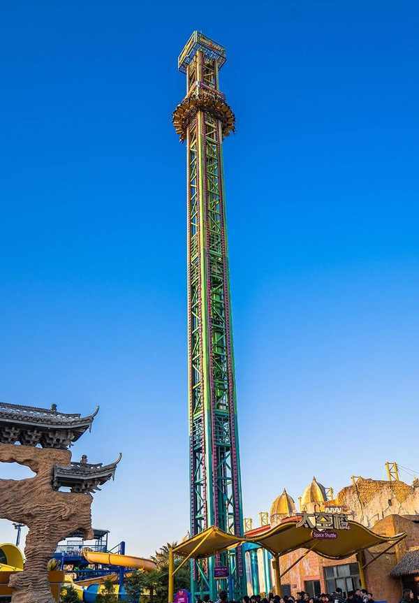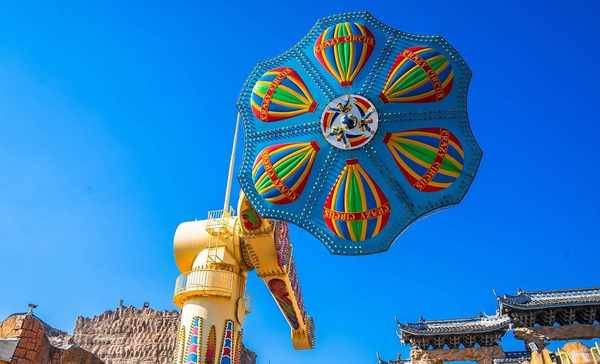 接下来你还可以去体验:太空梭、跳楼机、大摆锤、海盗船、过山车、旋转木马、热气球、无轨小火车等各式游乐项目,当然这些项目都是免费游玩。随着时间的推移,景区内的游客也是越来越多,不过只要你时间充足,每个项目玩一遍是完全没有问题。