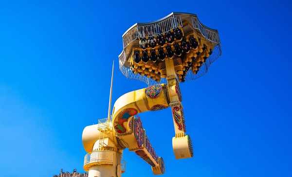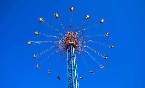 这第一个该玩的是疯狂马戏团,据说是景区最受欢迎的游乐项目。一只庞大的机械手臂,拎着一巨型花朵,在空中翻转腾挪,看着就相当得惊心动魄,体验起来肯定非常的惊险刺激,特别是所有人被倒挂的那一下,绝对让人脑门充血,肾上腺素飙升。