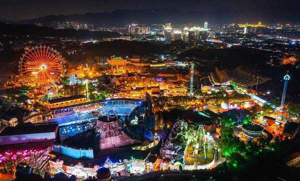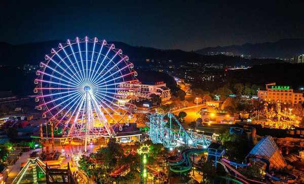 随着夜幕降临,梦幻谷开启了更加梦幻的时光。霓虹闪烁,在忽明忽暗的环境中,各种游乐项目变得更加的神秘与刺激。此时的你尽管尖叫,释放生活中的各种压力。当然你也可以与心爱的人一起坐上摩天轮,感受高度与浪漫的同时,还能欣赏美丽的横店夜色。