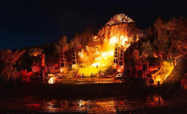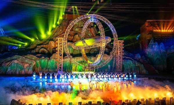 20:00在太极舞台上演是《梦幻太极》节目。这是全球最大的火山实景演出,以“太极”为元素,阐释人与自然、与万物之间的联系,充分运用了激光、 LED等现代高科技手段;以舞蹈、杂技、魔术、影视特技等表现形式;融合炫目的服装、优美的舞姿、震撼的音乐、梦幻的色彩,呈现出一台精彩绝伦的艺术盛宴,让游客在惊喜与欢乐的氛围中,感受中华文化的博大精深。