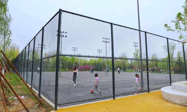 在公园园区的西南侧,有个面积不小的运动场,目前大门是免费时尚的,有很多人在里面运动健身。踢足球、羽毛球、轮滑都可以。