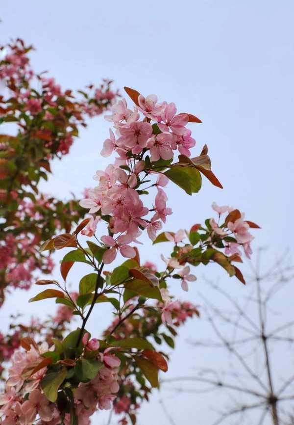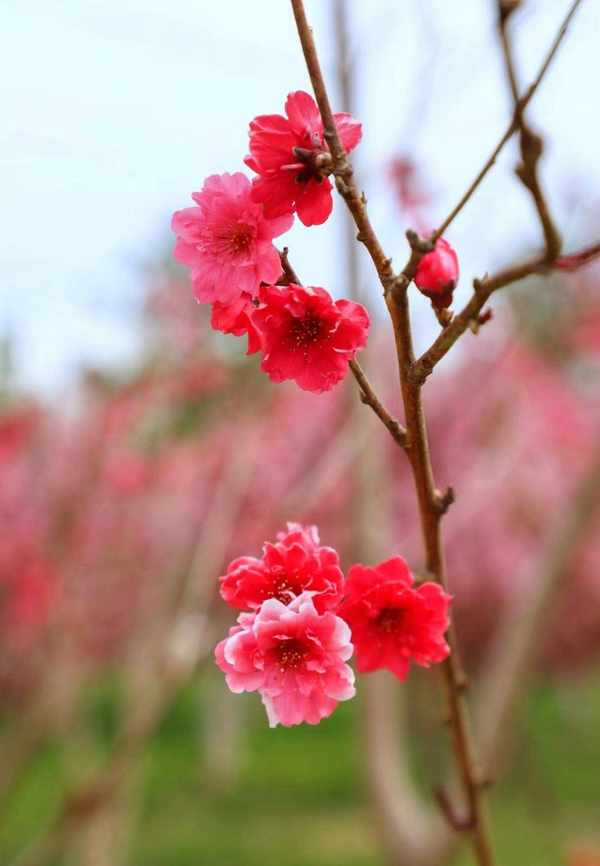 嫣红的碧桃,完全没有一丝娇羞感,迎着暖阳,大方地绽放,尽情展示着它短暂而妩媚的生命。