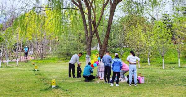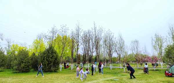 公园里到处可见仨一群俩一伙的休闲游客,遛娃的遛狗的遛鸟的,运动的骑行的滑轮滑的,摄影的写生的看书的……