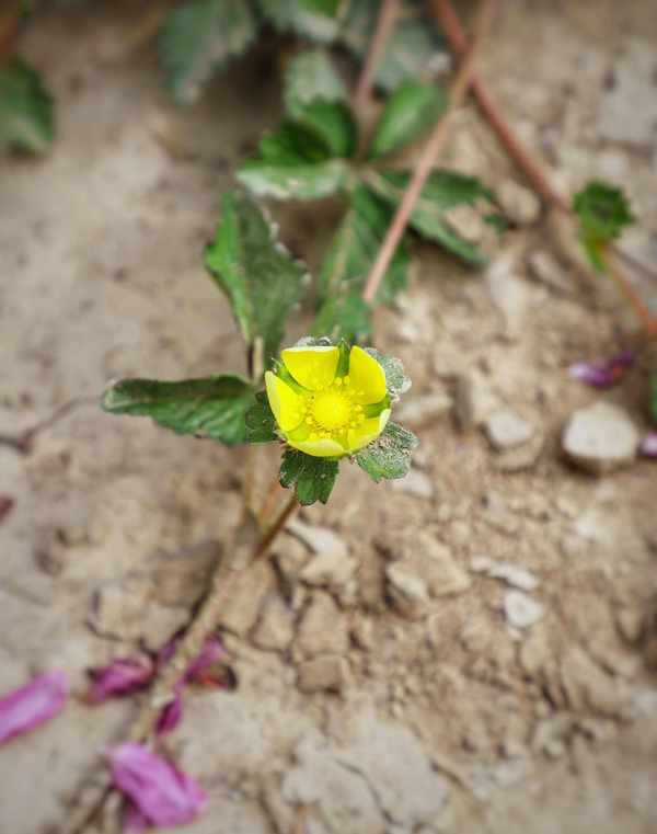 我用手机查了一下,这种小黄花名叫蛇莓(蔷薇科蛇莓属植物),它的花落之后就会结出像袖珍草莓一样的小红果实。这玩意在有些古书中还有记载说是“蛇莓是蛇的食物,而且有蛇行经的地方一般就会有蛇莓……”,实际上这种蛇莓是有微毒的,不可使用,但有时也会被中医少量入药,具体功效不详(请勿食用)。
