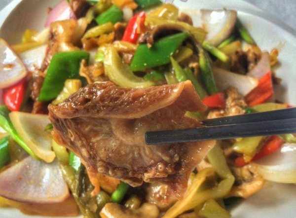 牛欢喜是母牛的生zhi器官,经过处理过后,和其它配菜制作成美味佳肴,看起来和其它肉类并无多大区别,熟透后有点像肥肠,广西人经常是把牛欢喜切成小块,和酸菜、青椒、辣椒、豆豉等调料一起炒,口感爽脆,十分下饭。