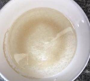 100g温水倒入盆内,加入酵母。 酵母的量在2~3g之间,先把这两样混合的均匀搅拌在一起,然后在将温水缓慢的倒入面粉里,边倒入边搅拌,搅拌均匀然后用手把面活成一个面团,面怎么样才算活好。盆光,面光,手光,这样面才算活好。也可以成为三光。最后面团上面盖上盖子就可以发酵面团啦
