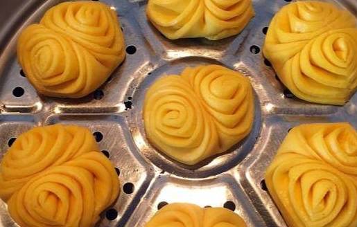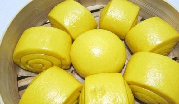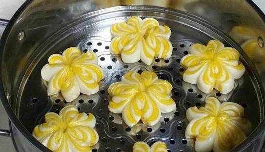 这是用南瓜和面变成黄色面团,还有白色面粉和成的面团,一起蒸出来的花馍,不得不佩服北方人蒸馒头的手艺。