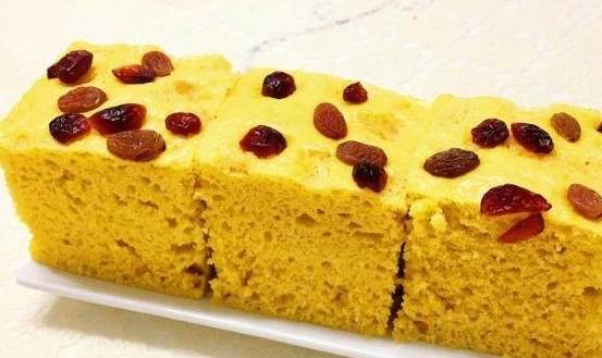 这是用南瓜用面粉发酵蒸出来的馒头,有人也叫发糕,上面铺上果脯味道好极了,记得里面加一点白砂糖。