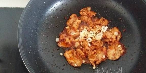 5炒出红油后下葱姜蒜末,炒出香味