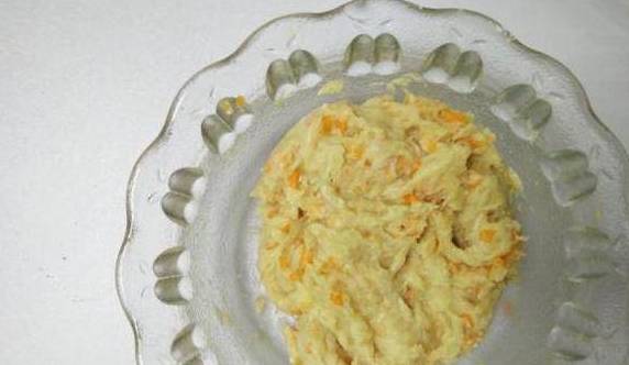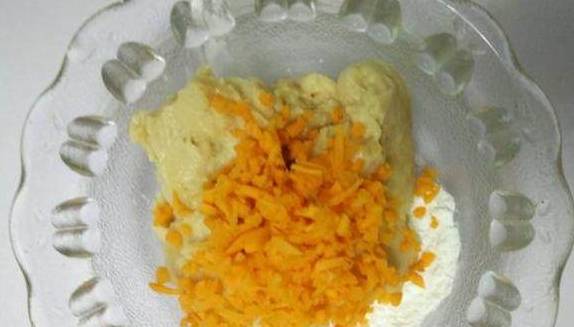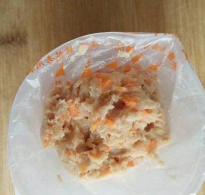 把搅拌好的肉馅胡萝卜还有淀粉混合在一起
