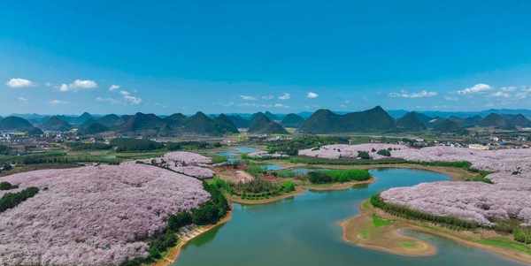 平坝的樱花已经盛放,如今的樱花园进入了盛花期,来到这里游玩打卡的人也越来越多,尤其是在周六周日,之前这个景区就能够乘坐直升机游览,今年这里还增加了热气球呢!