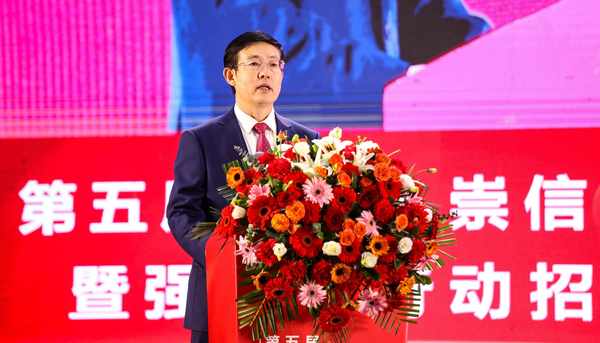 会上,张拴会作了主旨演讲。他代表崇信县委、县政府向莅临大会的各位企业家、各位领导、各位嘉宾表示热烈的欢迎和诚挚的问候,向长期以来关心支持崇信发展的社会各界朋友表示崇高的敬意和衷心的感谢。同时希望广大企业家、广大客商和乡贤秉承义利双行优良传统,多到崇信参观考察,寻找更多发展契机,广泛开展交流合作。