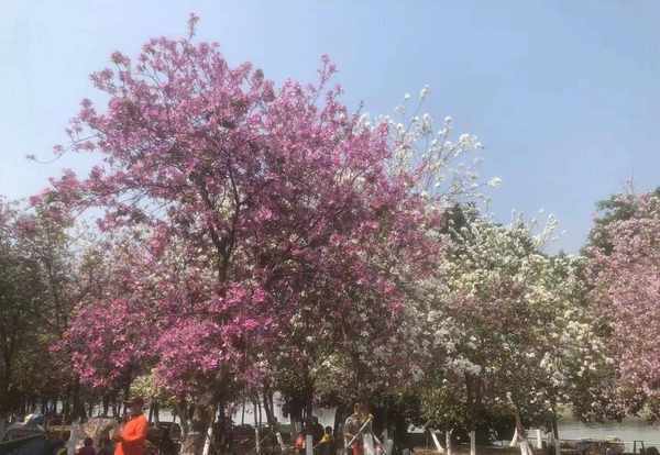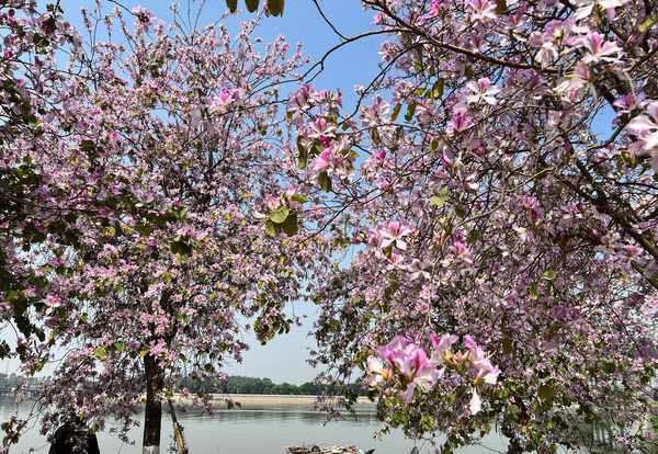 这个周末紫荆花开得正盛,花香弥漫在空气中,吸引了许多游客前来观赏。不仅如此,这里还是露营的好去处。