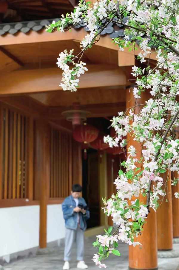 寺院的独有北宋时期建筑与海棠真的很出片,这里的海棠是西府海棠,而且对比樱花公园人山人海来说,寺院的宁谧更适合不喜欢凑热闹的人来打卡。