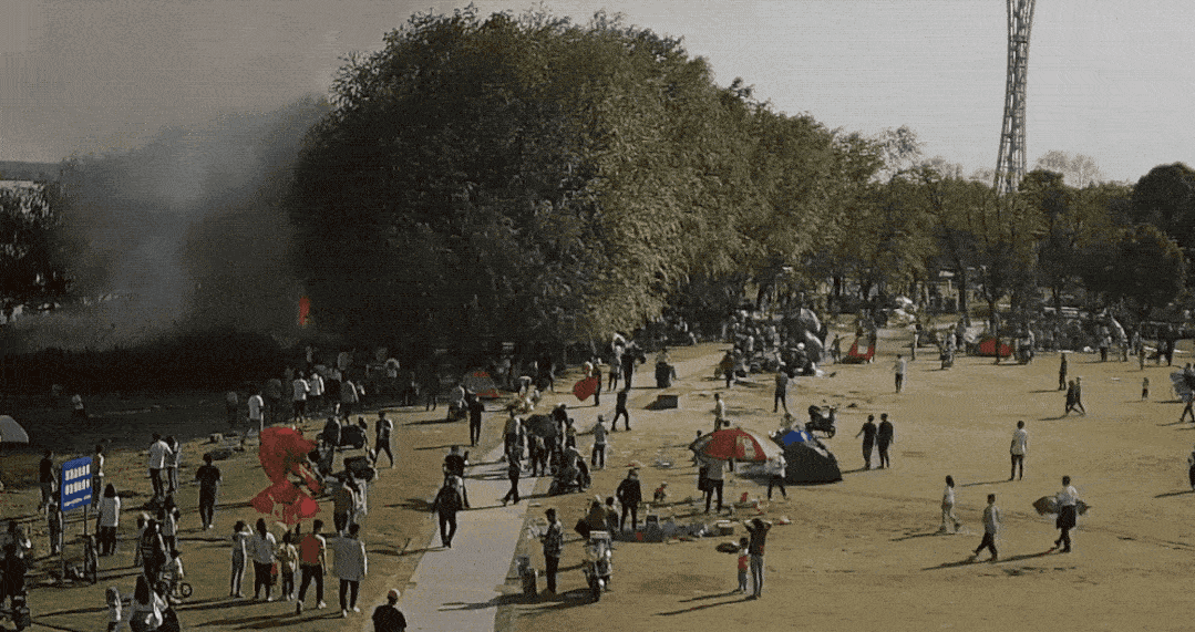 2022年4月10日15时50分,江苏南京江北新区桥北滨江生态公园靠近江边位置的草坪失火。据了解,当天是星期日,有不少人在此露营休闲。