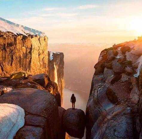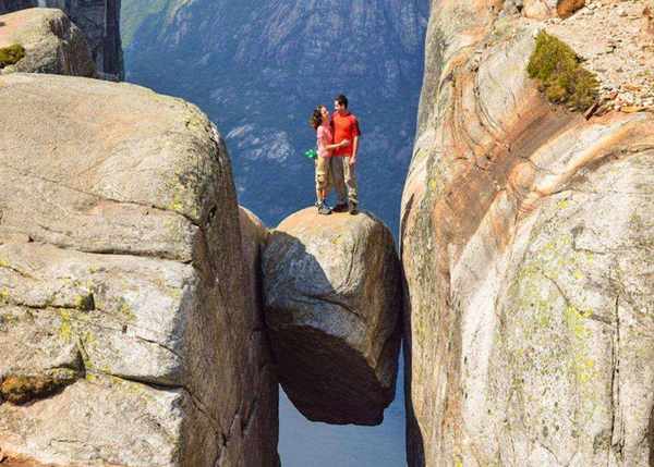 位于挪威谢拉格山顶上,就有着一块5立方米的石头,它连接着两座山峰,其高差至少有一千米。