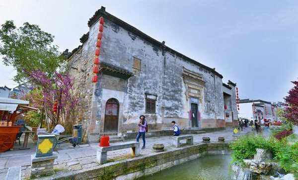 原有的徽州古建筑依然保留在此,古色古香的房子外面,窜满了绿色的爬山虎,中间点缀着几个红灯笼,颇有一股子老徽州的味道,老建筑内都改成了民宿和客栈,门外摆放着一张张充满艺术气息的桌椅,游客们可以坐在客栈门前的桌椅上品茶,歇脚。