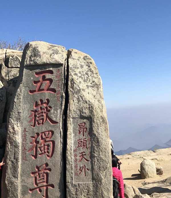 在泰山山顶玉皇阁旁有耸立着一块“五岳独尊”的石刻,这是泰山的标志性景观,为当时泰安府宗室玉构所提。