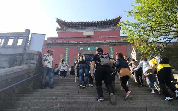 泰山最难爬的一段在十八盘,也是其最险要的一段,全程共有79盘、1633级石阶,如果乘坐缆车的话就会错过这里,也就体会不到登泰山的乐趣了。十八盘的尽头是南天门,为登泰山顶的门户,这是一座清代风格的山门,始建于1264年,期间经过多次重修。