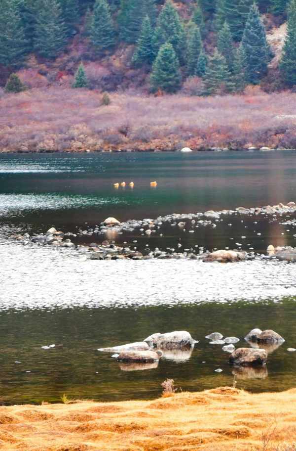 措普湖,面向辽阔的章德大草原,三面被杉柏森森的原始森林包围着,湖中还有美丽的天鹅和黑颈鹤。最诱人的,还是那色彩多变的湖色:晴天湖色由近到远呈现出银白、湛蓝、深青、墨绿的神奇色谱。