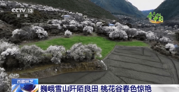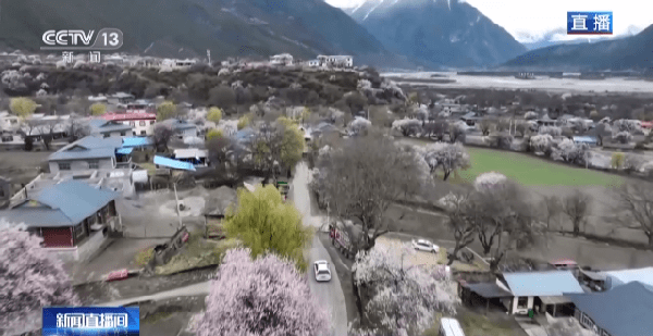总台记者 普布次仁:花开时节,花海连绵五十余公里。在雪山脚下,这里的桃花会随着海拔气候的起伏变化,从每年的3月中下旬开始依次绽放,层层渐染,持续月余。田野新绿、雪山巍峨,间或独具特色的村落、民居,让人仿佛置身世外桃源山水画卷。桃花谷独特迷人的风景惊艳了春天,也让这里成了赏花旅游的重点区域。