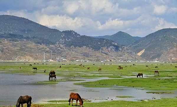我们又去了纳帕海,这是一个草海和沼泽地,雨季的时候,这里汪洋一片,旱季水退去就成了一望无际的草海,可以放牧。远处是群山,近处的草地有一汪一汪的水,天上还下着零星小雨点,只能骑马走一圈了。又是骑马,都骑了好几回了,这香格里拉之旅,似乎都在马背上。是啊,高原湖泊和草甸还在原始状态,没有修路,要深入进去看,就得骑马。牵马的有老人也有孩子,为我牵马的是一位脸上布满皱纹的藏族老妈妈,在沼泽地上深一脚浅一脚地走着,老妈妈的脸上写着沧桑,看样子日子过得很艰难。我有点不太忍心,早点要求返回了。