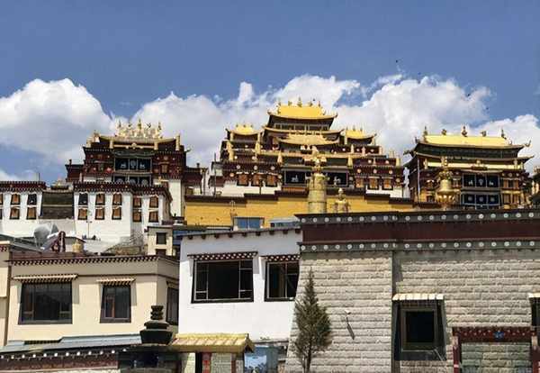 松赞林寺,是一座仿布达拉宫的建筑,该寺依山而建,白墙黄屋顶,大都是一些平房建筑。里面有个正殿很大,可容纳2000人诵经,我们悄悄进去溜了一圈,有和尚在念经。寺院不收门票,里面也没有多少游人,就是看了一下西藏特有的寺庙建筑,拍了几张照片,在几个有藏族风俗的小屋里瞅了几眼,就出来了。松赞林寺被誉为小布达拉宫,我这也算去了趟西藏了吧。据说松赞林寺现在扩建的规模很大,建筑金碧辉煌,犹如一座古堡。现在进门收门票,里面还有另外收费的地方,可能游人很多,热闹非凡了吧。