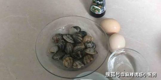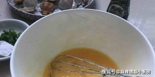 蛤蜊13个、鸡蛋2个、温开水适量、细香葱适量、家乐热炒鲜露20毫升、精盐2克