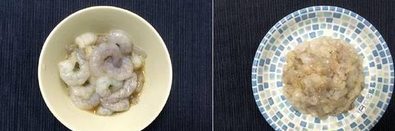 1.将虾仁放在碗里,加少许料酒和白胡椒粉腌制10分钟,然后取出切成小粒。如果喜欢细碎口感,就再剁几刀。个人建议不要切太碎,大约3-5mm长度即可。