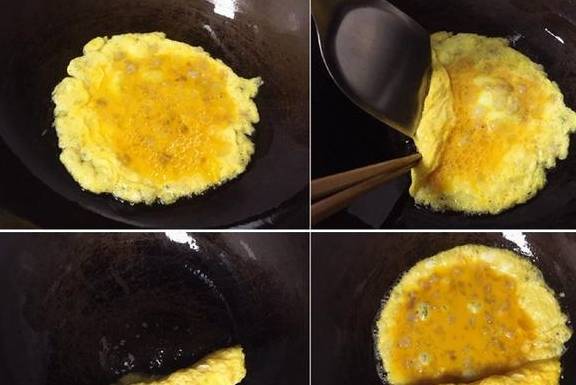 日式厚蛋烧一般用长方形的平底不粘锅,但其实用最普通的铁锅就能搞定。如果不追求有棱有角的外型,就不必专门为了做它去买一口小锅。好了,接下来看看如何用铁锅来做虾仁蛋烧吧。