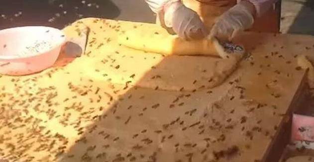 大妈卖的蜜蜂小吃,糯米卷,你见过哪种糖果可以吸引来这么多蜜蜂,根本就是化学元素嘛!你能想象,你吃点心的时候吃出来半只蜜蜂的感觉吗?你不吐算我输!你能想象在大街上卖这种小吃的周围会有人存在吗?小时候,我被蜜蜂蛰住过,长大之后,看到蜜蜂绕道走,这么一大堆的蜜蜂,对于我而言就是灾难吧。不要说让我花钱买,这种食物,掏钱让我品尝我都要考虑好久。