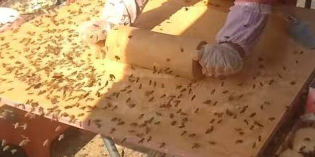 只见小摊的老板娘正十分认真的忙着手里的活儿,手套围裙什么的都裹得严严实实的,凑近一看,原来这一只只的都是货真价实的蜜蜂啊!难怪一旁的客人都只能远远的观看,而不敢上前半步,但老板娘却似乎早已习惯了,做东西的手法也是非常的娴熟。
