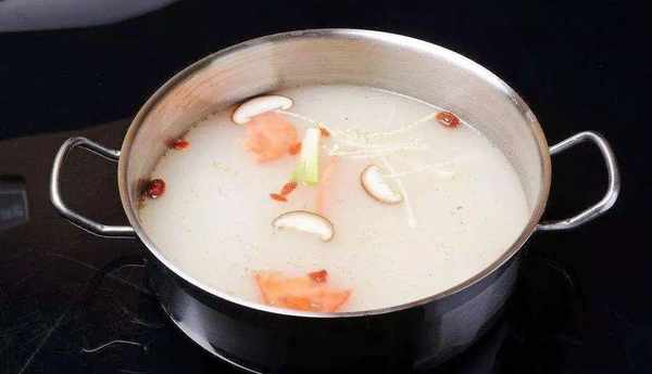 1.猪棒骨、鱼骨分别入沸水中大火汆5分钟,捞出控水放入不锈钢桶内,加清水大火烧开,改小火熬4小时至汤白。