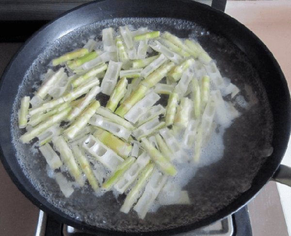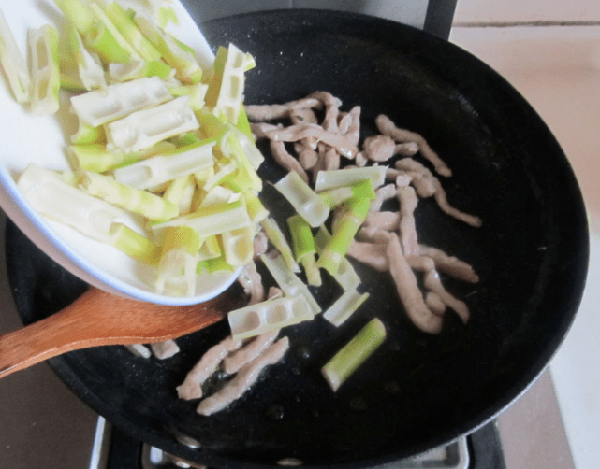 4,最后,我们再把切好的竹笋放在锅中了,用旺火快速的翻炒几分钟,等到食材炒到断生后,加入盐,鸡精进去,食材炒到入味后,就可以装盘了。