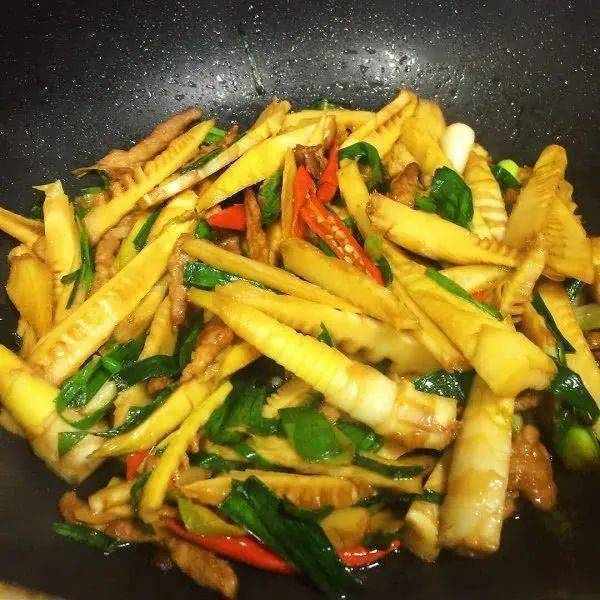 这道竹笋炒肉丝的做法是不是很简单呢,喜欢的话在家试试吧,竹笋风味独特,加上营养丰富,大多数人都喜欢吃,很多人认为吃上一盘竹笋,能够刮油三天呢,其实呢,竹笋是有刮油排毒的作用,但是呢,竹笋还含有其它的营养物质哦。