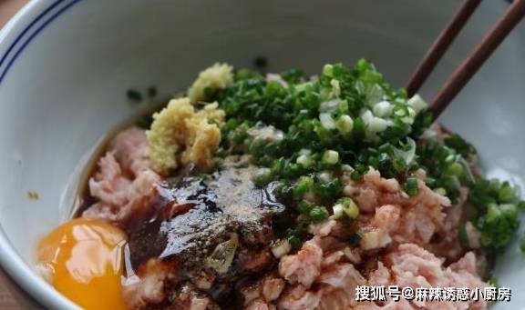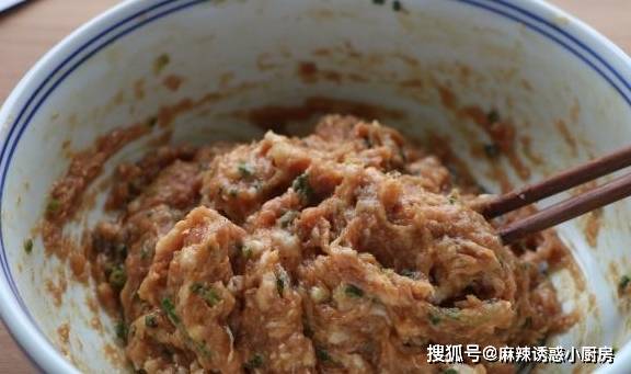 2、要充分搅拌均匀,直到肉馅儿出胶的状态;