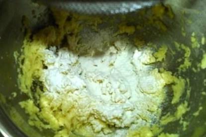 7.杏仁粉与低筋粉混合,筛入黄油中。