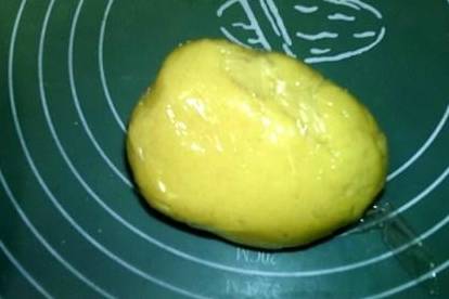 9.用保鲜膜包好,放入冰箱冷藏1小时以上至面团变硬。